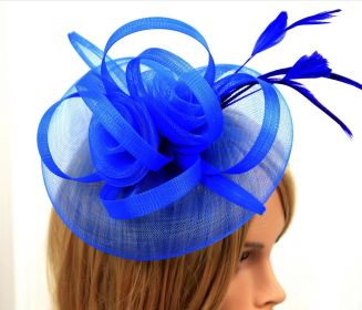 European And American Jockey Club Headdress Billycock Feather Top Hat Mesh Hat Bridal Headdress Flower Ball Party Hair Accessories (Color: Blue)